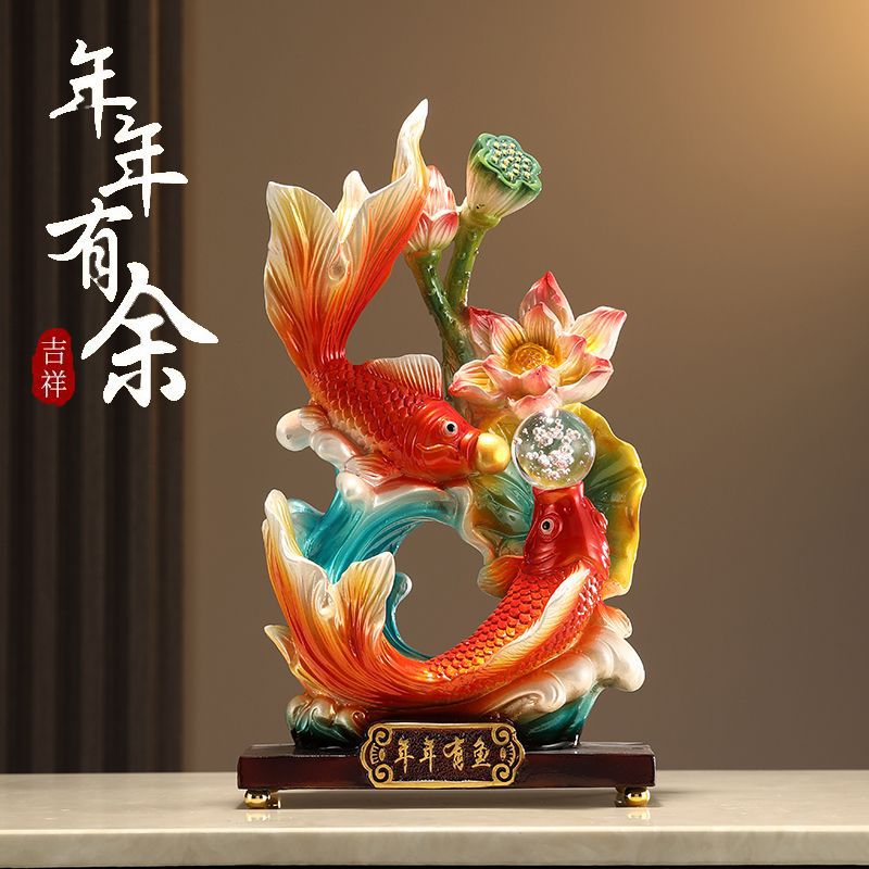 【Elemony Career Success】Double Fish & Pearl Resin Sculpture – Flowing Wealth & Harmony Decor